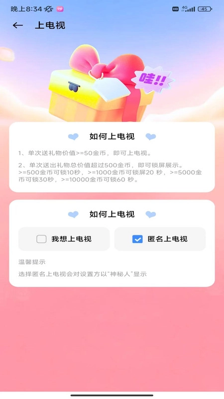 用户可以进入专属聊天框,通过图片、文字、语音、视频等多种形式进行互动,并且能够赠送礼物。