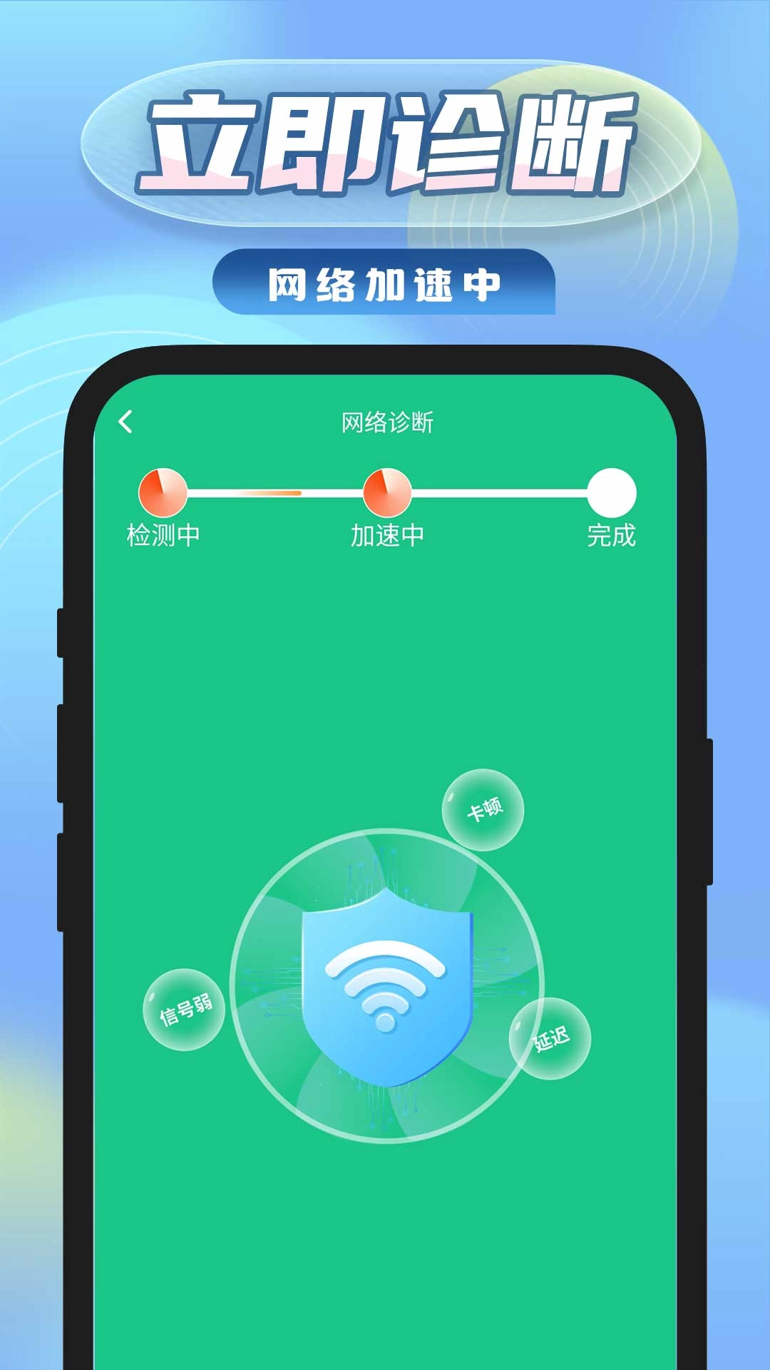直接连WiFi软件是一款能助力大家便捷完成手机信号连接的应用,它会为用户优先筛选信号强度高的网络,只需一键操作即可快速完成连接,还具备手机网络诊断功能,能帮助用户全面获取多种可用信号。