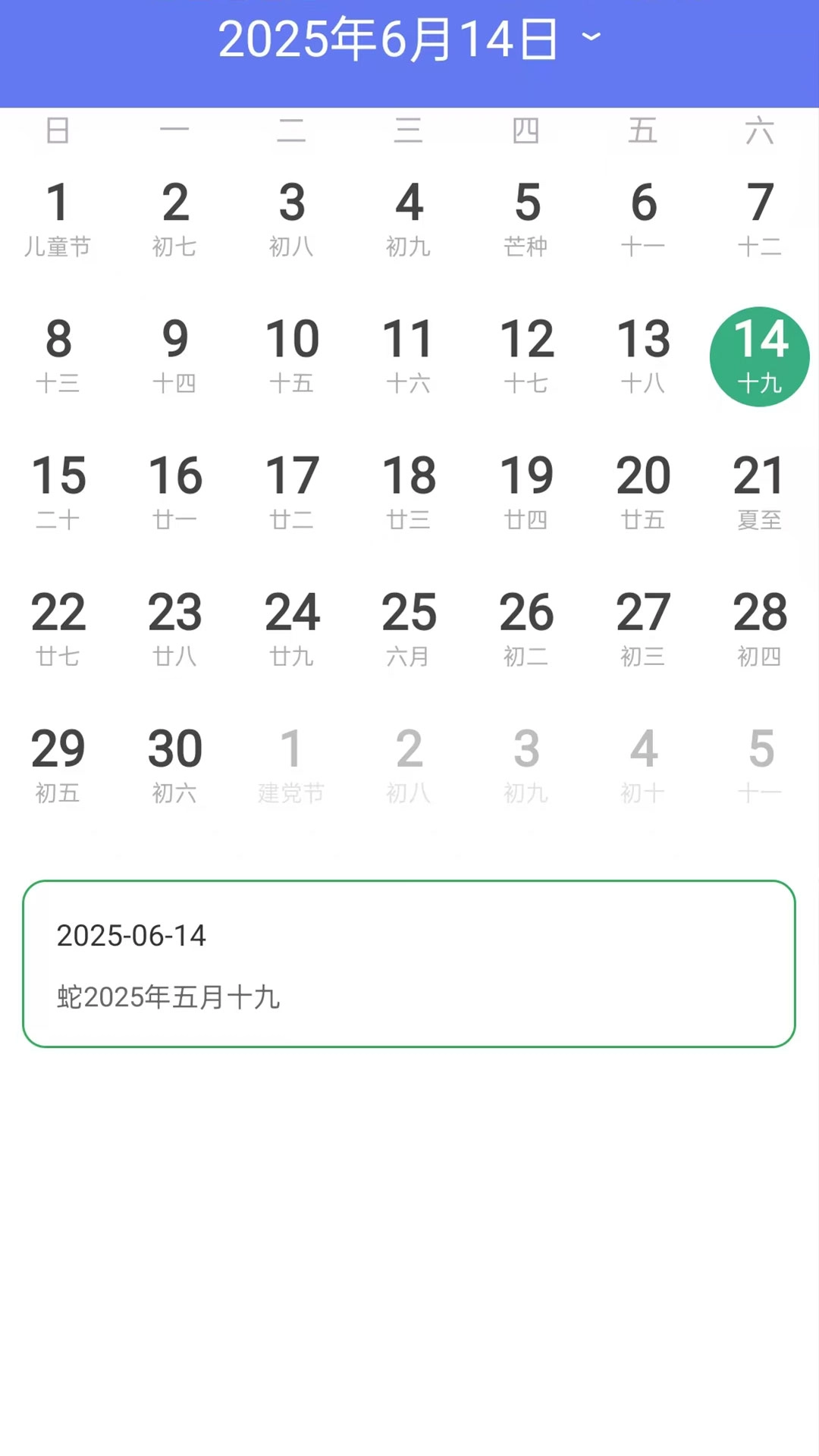 在日历页面随时可查询最新日历,知晓具体的农历信息。