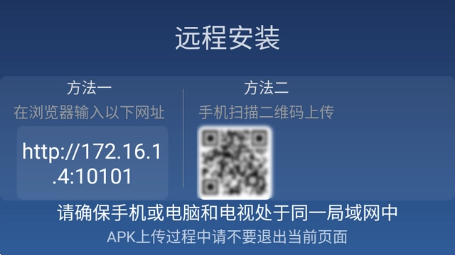 只需让手机或电脑与电视处于同一WiFi网络环境中,就能直接传输安装包。