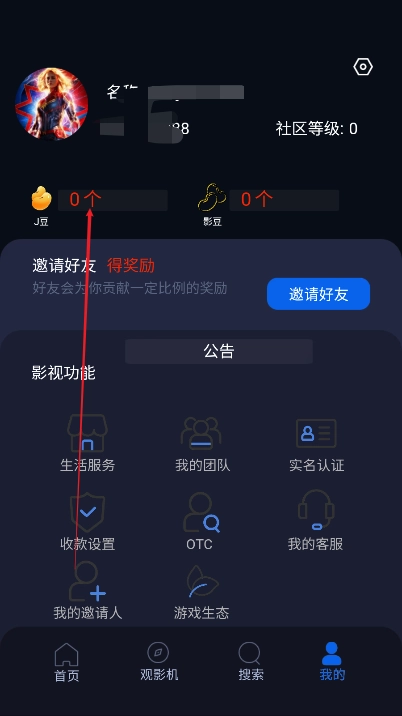 观看结束后,进入“我的”页面,就能看到自己获得的影豆数量了。
