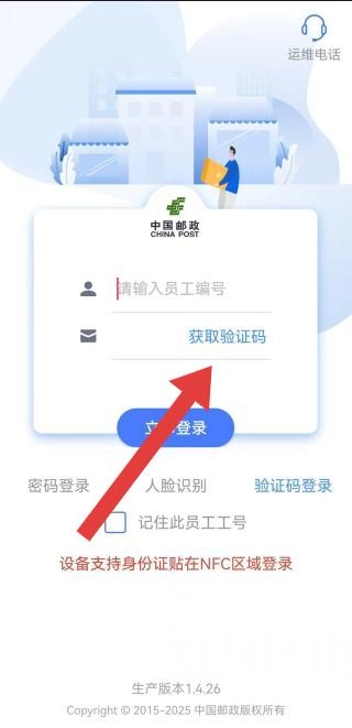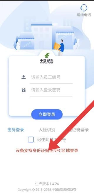 1、设备支持NFC时,可将身份证贴在提示区域,快速登录。