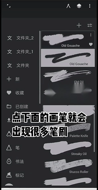 4、点击正下方工具栏中选择画笔,会出现很多笔刷。