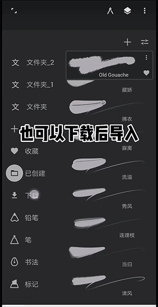 1、 平台配备数百款专业笔刷,既包含自然媒介类笔刷,也覆盖设计类笔刷;支持超100项笔刷参数的个性化自定义,同时提供笔刷及笔刷组的导入与导出功能。