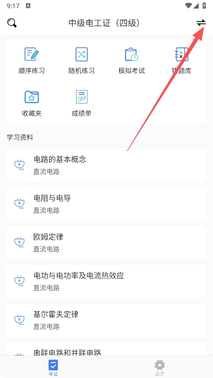 电工考试怎么切换科目