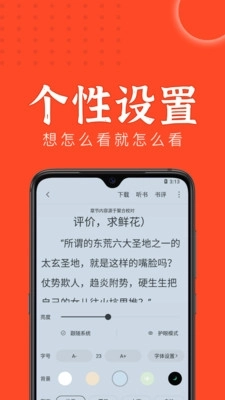 2、进行小说的阅读时可以开启阅读模式,可以很好的沉浸在阅读的世界中,不会受到打扰。