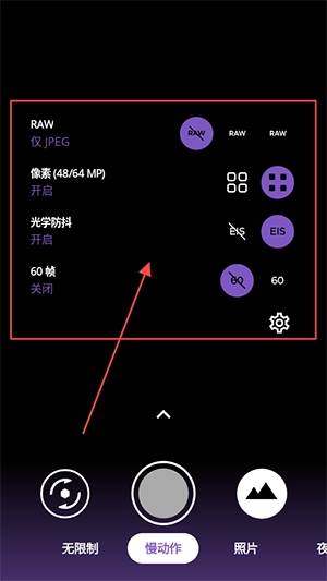 这款软件支持快速设置照片格式,像像素、防抖、帧率这类相关功能也能在这里完成配置。