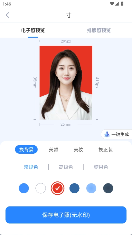 2、智能抠图换背景:可快速切换红、蓝、白等不同背景色,操作便捷高效。