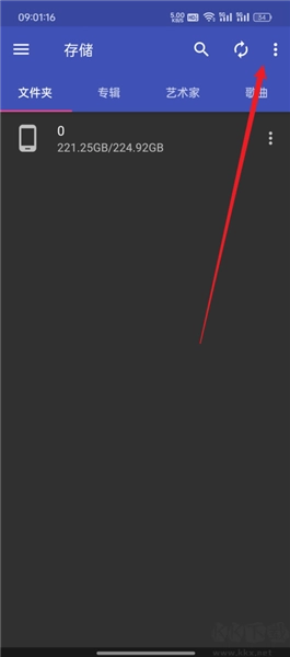 1、启动音乐标签App后,点击界面右上角的三点图标按钮。