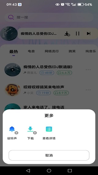 找到你感兴趣的铃声后,点击它就能使用设铃声、查看详情等功能了。