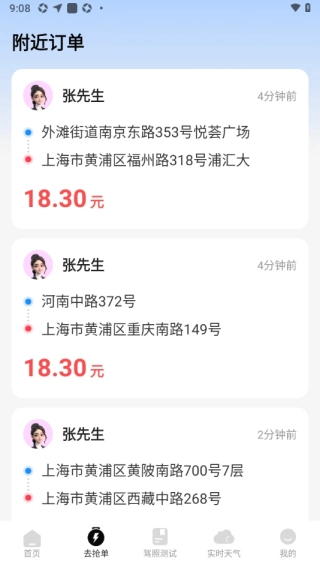 注册成功后,你就可以进入接单大厅开始接单。系统会依据你的当前位置,为你派发周边的订单,每个订单都会明确标注起止地点,同时也会显示该订单的具体收入信息。