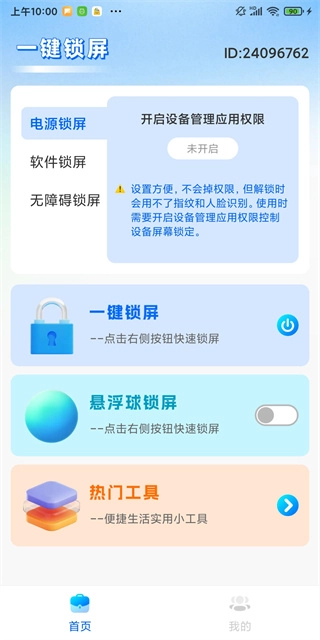 在首页能看到一键锁屏、悬浮球锁屏以及热门工具等各类工具的入口;