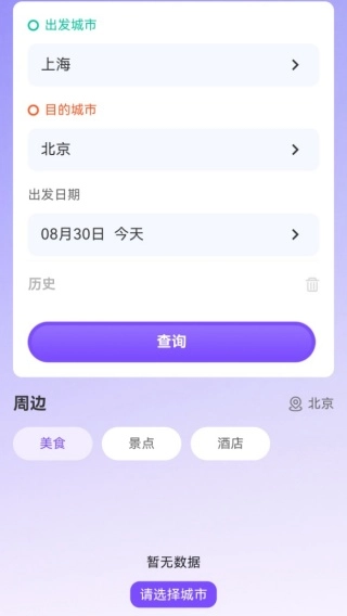 进入车票界面后,输入出发城市、目的城市和出发日期并执行搜索,结果会立即呈现给你。