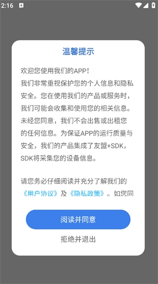 并安装,点击‘阅读并同意’,即可进入主页面;