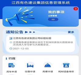 江西有色建设集团企业办公平台是一款为企业员工打造的高效办公工具。平台集成了丰富实用的办公功能,可满足员工多样化的办公需求。借助该平台,员工能更高效地推进工作任务,同时企业的各类通知信息也能实时触达,让大家充分体验智能化办公带来的便捷与舒适。