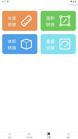 工具页面提供长度、面积、体积、重量等单位转换服务,能快速完成换算。