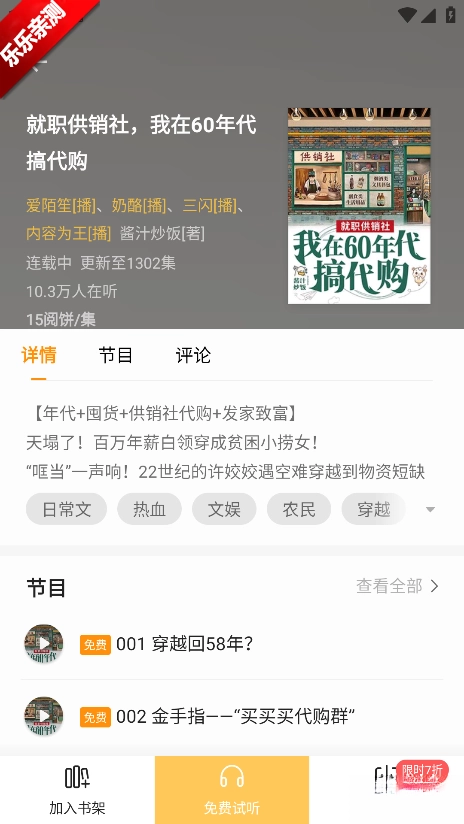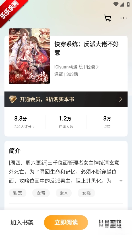 3、在小说详情页面里,找到并点击“加入书架”或者功能类似的按钮