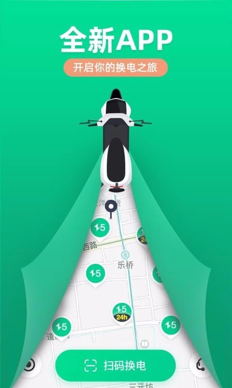 点击扫码换电,一键扫描二维码获取换电位置,实时导航换电