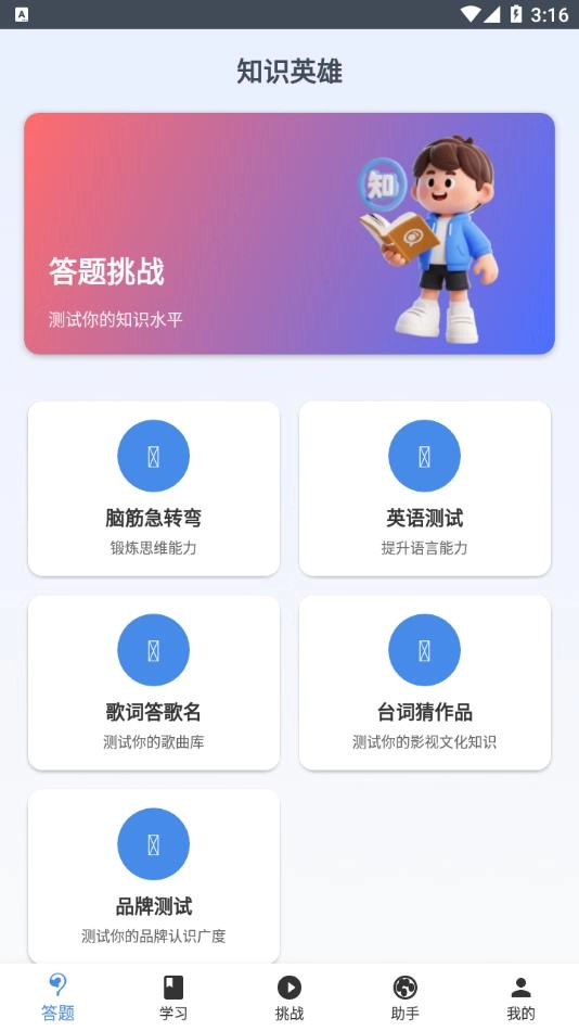 把知识学习和答题挑战结合起来,摆脱传统学习的乏味感,在有趣的互动过程中轻松积累知识,增强学习的积极性。