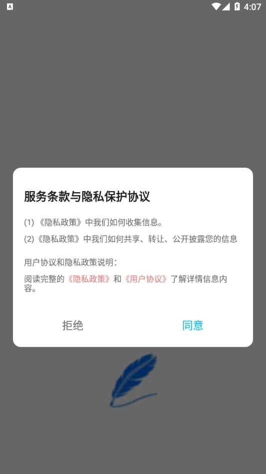 软件安装完成后打开,点击同意服务条款和隐私保护协议。