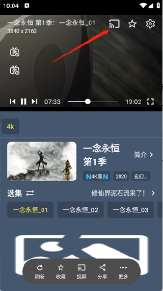 打开你想看的影视资源,进入播放页面后,点击右上角的投屏图标。