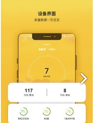 1.查看设备的详细信息,包括水质状况、设备剩余使用天数以及各级滤芯的使用情况。