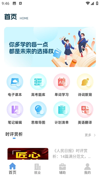 在首页能看到电子课本、单词学习等各类功能板块的入口;
