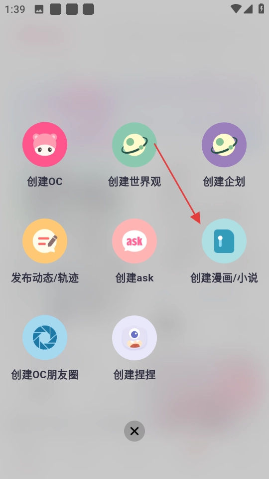 在创作选项里选创建漫画小说,进入类型选择。