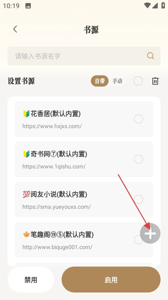 在书源设置页面,点击右下角的加号按钮,即可进入导入源页面。