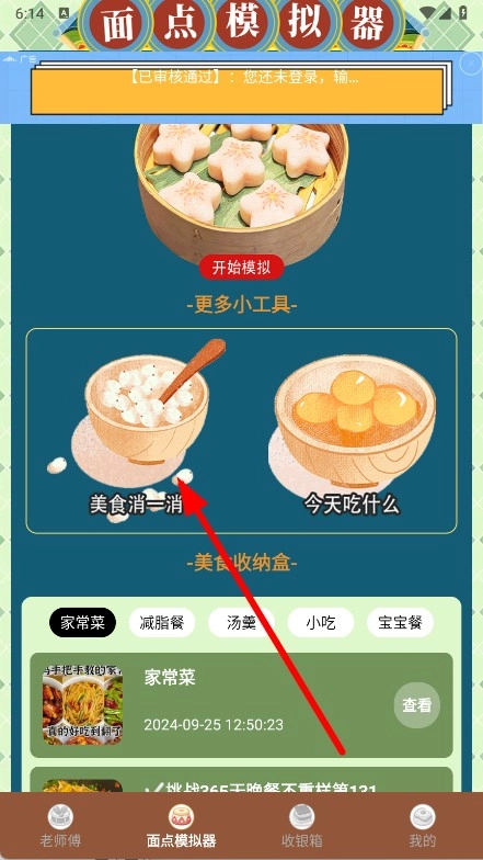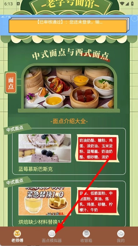 打开应用后,点击底部导航栏中的“面点模拟器”选项,即可进入面点模拟器的功能页面。