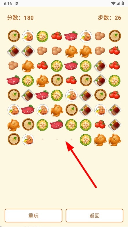 观察屏幕上美食图标的分布情况,通过点击或滑动相同的美食图标来进行消除操作,完成消除后就能获得相应的分数。