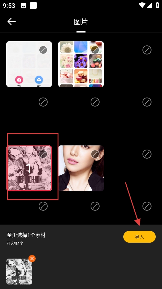 在选择页面选定目标图片后,点击导入按钮,即可将图片导入系统进行后续编辑操作。