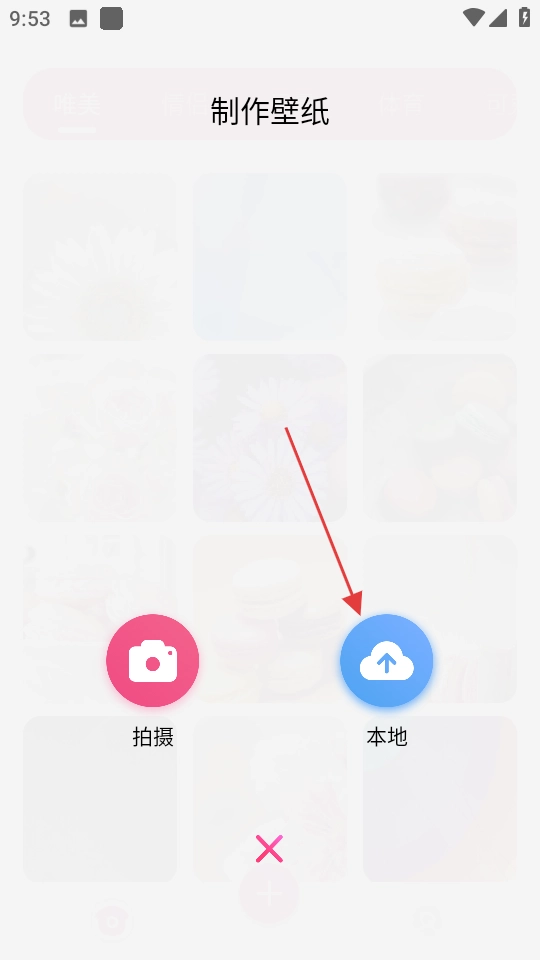 在制作壁纸的页面中,点击“本地”选项,然后选择本地图片用于制作壁纸。