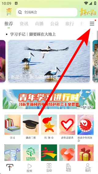 打开青新闻客户端,点击右上角的三条横线图标,进入频道页面。