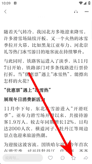在新闻详情页面,点击底部的星星图标,即可完成对该内容的收藏操作。