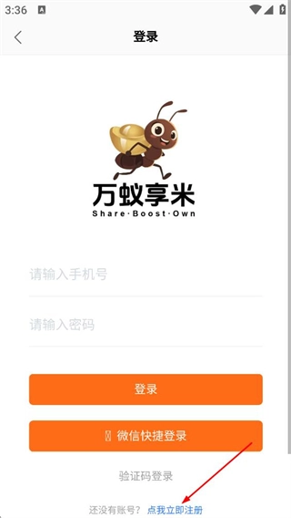 万蚁享米怎么注册账号和密码