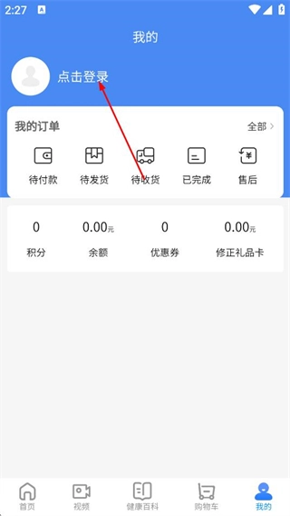 在修正健康首页,点击底部我的,进入个人页面。