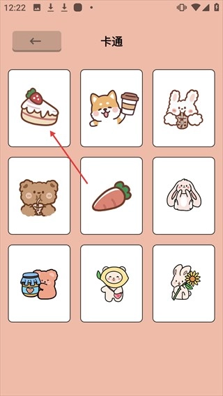 3、在【卡通】图案列表里,点击草莓蛋糕图案,就能进入该图案的绘画编辑界面。