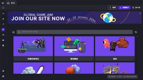 1.安装好GDevelop后,先完成注册并登录账号,接着点击界面左侧的小锤子图标;