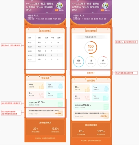 会议成员可查看相关内容。需记录该成员在本次会议中的互动表现、参与轨迹等信息。