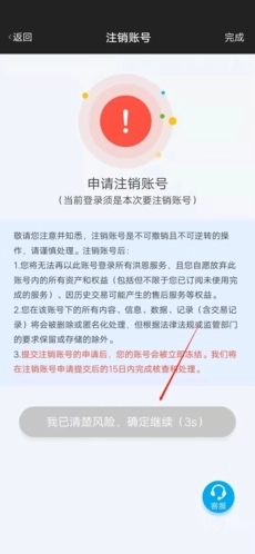 5、在确认注销账号的风险后,点击【我已清楚风险,确定继续】。