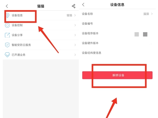 解绑摄像头的操作步骤如下:您可进入个人中心页面,依次点击【我的设备】→【设备信息】→【解绑设备】,即可完成摄像头的解绑操作。
