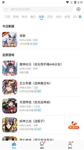 【类型丰富】内含传奇,仙侠,策略,三国,休闲,魔幻,回合,挂机,卡牌等千余款福利游戏;