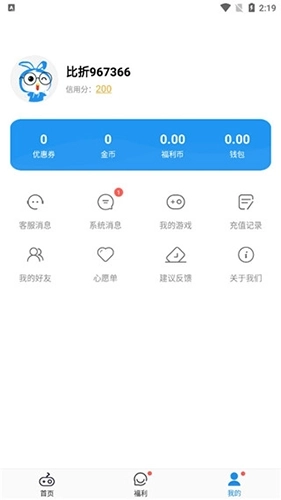 8、在“我的”页面里,你能查看自己的优惠券、金币、福利币以及充值记录等信息。