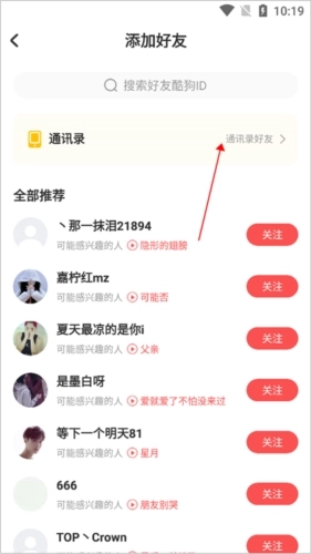 4、还可以在添加好友的页面里,点击【通讯录好友】选项,以此来搜索并添加手机通讯录中的好友。