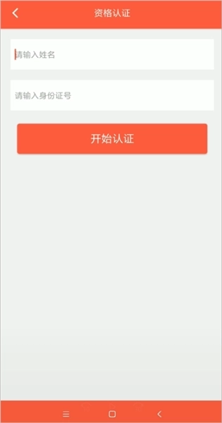 3、输入需要进行资格认证的人员姓名和身份证号,点击“开始认证”。
