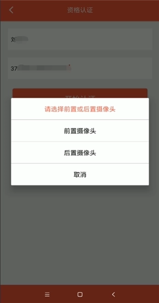4、选择前摄像头或后摄像头,点击右下方“开始检测”根据指南操作,进行认证。