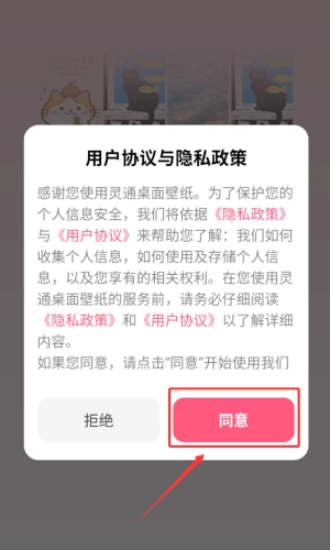1、打开后,会弹出隐私协议弹窗,找到红框标注的同意按钮并点击,即可继续后续操作。