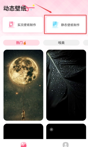 2、进入壁纸制作的专属界面后,在功能选项里找到红框标注的静态壁纸制作模式并选中,以此开启创作流程。