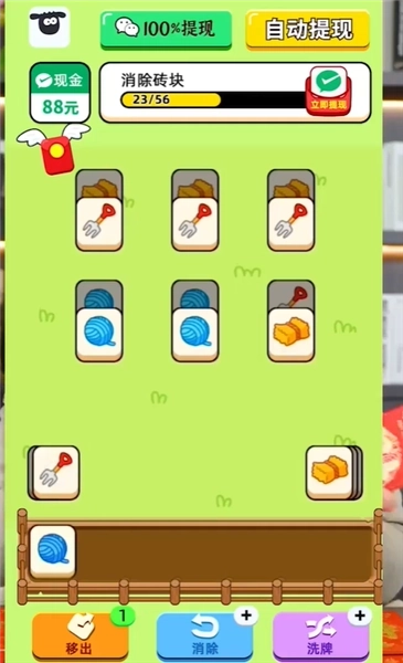 2.当把所有图标都消除完毕后,就能顺利通关游戏,与此同时还能领取到相应的红包奖励。